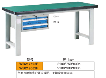 工作臺介紹工作臺WB217502: 工作臺采用優質冷扎板精工制作而成,堅固的工作桌框架,牢固平穩,可使工作桌承重1000kg;多種工作桌面選擇,可配合不工使用的要求; 工具吊柜(箱),側柜(箱)燈架,調節腳杯,外形美觀;層板,抽屜質量上乘,承重大,抽屜內可根據需要任意分隔;節約空間,適用性強
