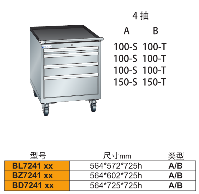 2、由各種型號的工具柜增加頂柜和腳輪等移動部件組成。