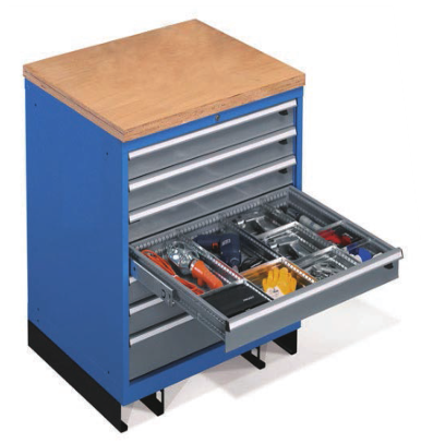 工具柜尺寸870x750x990|顏色RAL5012+7000|包含7個抽,一張厚40MM層板臺面,和一對鏟腳。