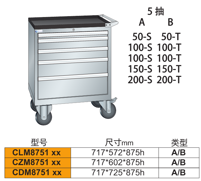 2、由各種型號的工具柜增加頂柜和腳輪等移動部件組成。
