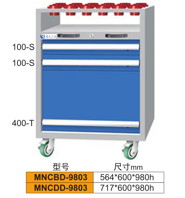 刀具車(chē)是存放、搬運(yùn)刀具的裝備,此類(lèi)刀具車(chē)可存BT30、BT40、BT50、HSK63、HSK100等多種型號(hào)的刀具。多邊成型的整體式側(cè)板上有模數(shù)化的人字孔,可將刀座按水平或15°、30°傾斜放置,方便多種刀具的存取。 高強(qiáng)度腳輪,車(chē)前為兩個(gè)定向輪,車(chē)后為兩個(gè)萬(wàn)向帶 剎車(chē)輪,推行平穩(wěn),方向性好,剎車(chē)固定后不會(huì)滑動(dòng)。