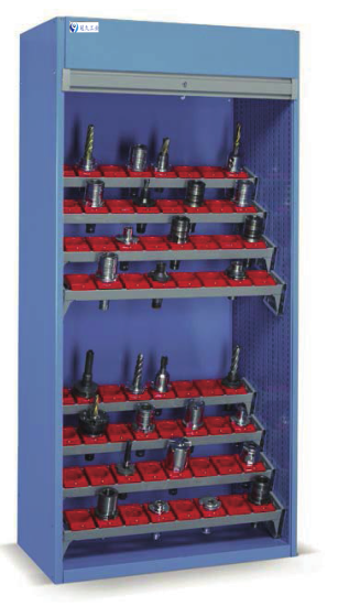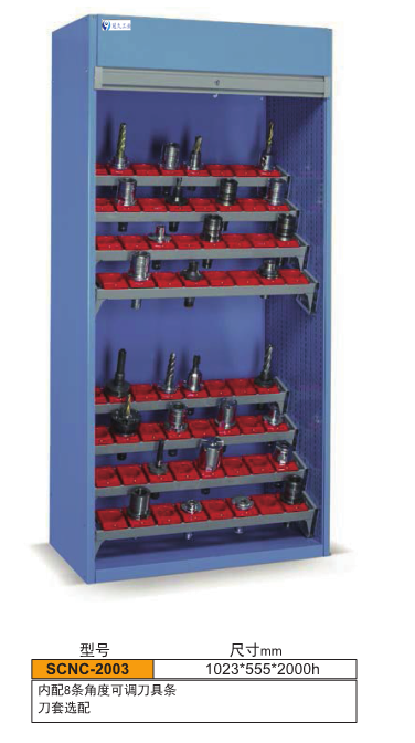 刀具柜,是專門用來存放各種車床上常用刀具的柜子。刀具柜的柜體一般采用冷軋鋼板制成,堅固耐用。刀具柜內常有3-5個橫檔可拉抽屜,抽屜內有ABS材質的刀具套,防滑防油,以便刀具自由組合式的存放。刀具柜一般都為雙門對開式,柜體裝有可調式腳墊,柜體可調整高度,柜子防滑防潮。刀具柜常用在工廠機加工中心,便于刀具的集中管理,取用方便。