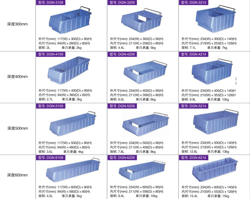 物料管理中最基本的單元容器,其功能化額的設計和靈活多樣的應用,使得物料庫存管理和作業現場管理更加有序、卓效,適合工廠、辦公室各種小型零件、物料、文具用品等之儲存使用。