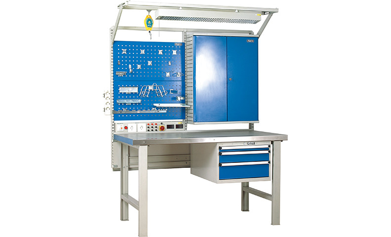 臺面具有防靜電、耐火和耐磨性,表面任意兩點電阻在106-109Ω之間,工作臺高度、水平及重心可調節,以適應不同生產要求,人性化設計的附件,支架由帶防靜電漆的鋼板制成,堅固耐用,承載能力:500kg,高度調節范圍:670-1120mm。