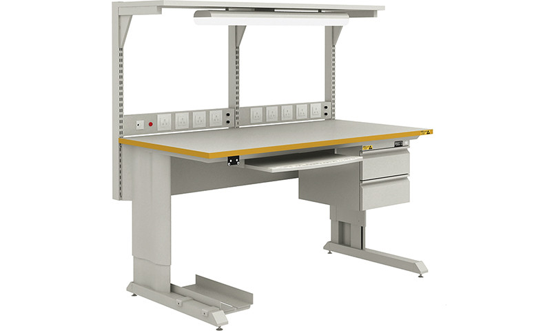 臺面具有防靜電、耐火和耐磨性,表面任意兩點電阻在106-109Ω之間,工作臺高度、水平及重心可調(diào)節(jié),以適應(yīng)不同生產(chǎn)要求,人性化設(shè)計的附件,支架由帶防靜電漆的鋼板制成,堅固耐用,承載能力:500kg,高度調(diào)節(jié)范圍:670-1120mm。