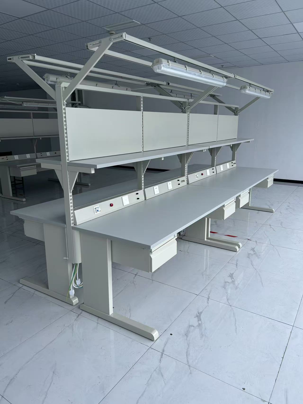 2、防靜電工作臺(tái)面采用防靜電防火桌面,具備防靜電、耐火耐磨功能