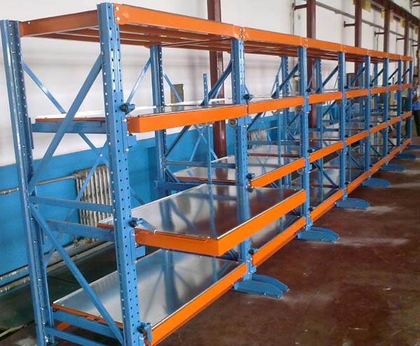 模具貨架又稱模具架或抽屜式貨架,主要存放各種模具物品,根據層載能力要求分為輕型模具貨架和重型模具貨架。貨架頂部可配置移動葫蘆車,以方便模具的起吊。