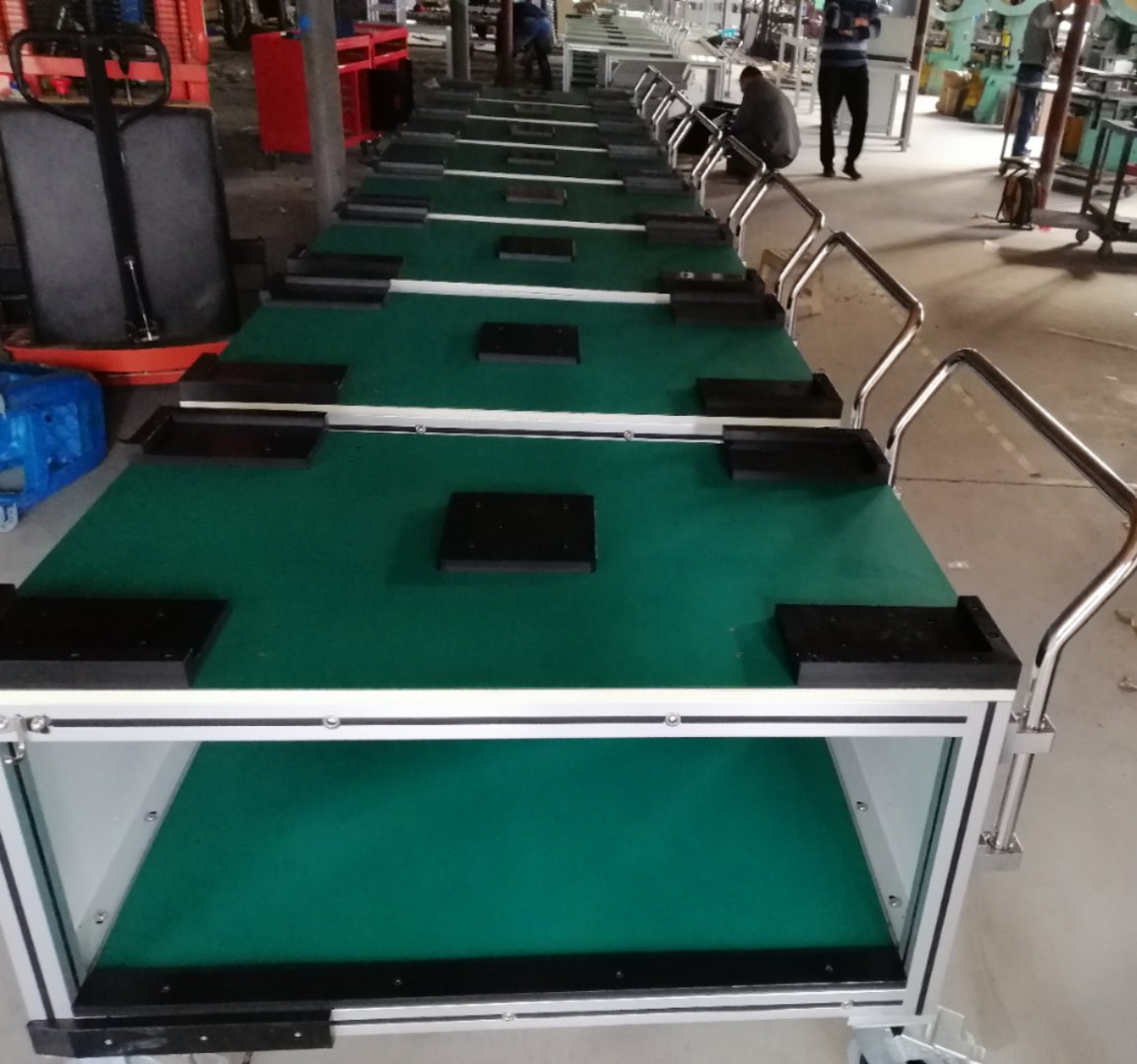 宇通客車pack線手推車定制項(xiàng)目是根據(jù)用戶要求研制的,該產(chǎn)品配備防靜電臺(tái)面板,pvc基板,防靜電,定位塊,防靜電腳輪,不是一臺(tái)手推車,是一個(gè)可移動(dòng)的檢測(cè)工作臺(tái)。配備了8寸防靜電腳輪靜音腳輪,推動(dòng)起來更省力。降低了人力成本.防靜電手推車,工作臺(tái)選冠久