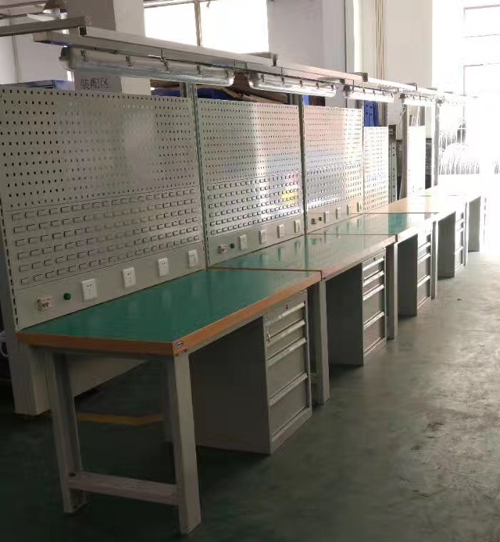 3、根據用戶要求,臺上可配置照明架、吊架、擱板、掛板、電源插座、零件盒等;滿足不同客戶的需求;