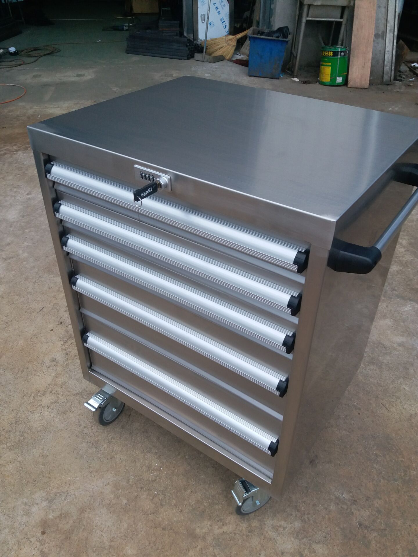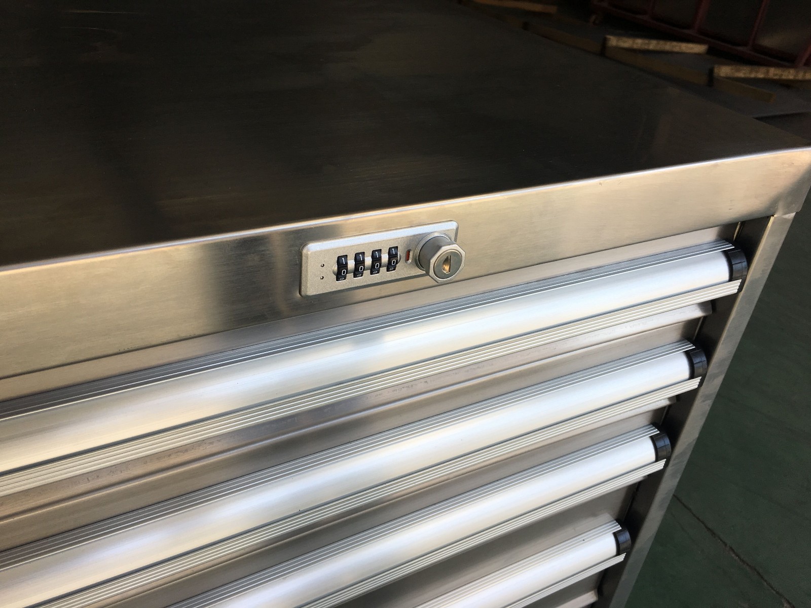 工具柜 車 表面拉絲,磨砂處理,產品美觀大方經久耐用.                                 冠久工具柜密碼鎖的優點:
