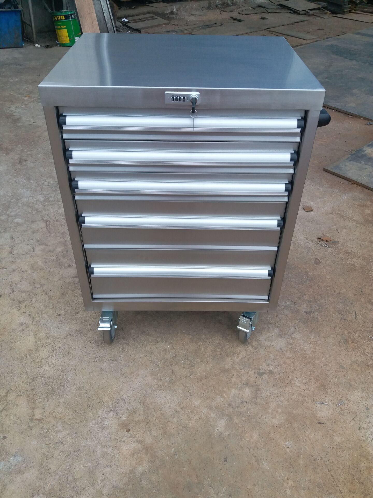 機械密碼鎖工具柜 車 使用SUS304不銹蝕鋼材質 ,可以在各種惡劣環境中使用,耐油,耐酸堿性佳。