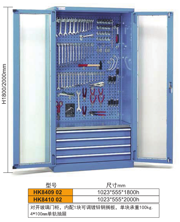 5、柜體門內板上帶有方孔和百葉掛板、可掛各類物件及工具。