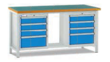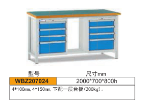 工作臺介紹: 工作臺采用優質冷扎板精工制作而成,堅固的工作桌框架,牢固平穩,可使工作桌承重1000kg;多種工作桌面選擇,可配合不工使用的要求; 工具吊柜(箱),側柜(箱)燈架,調節腳杯,外形美觀;層板,抽屜質量上乘,承重大,抽屜內可根據需要任意分隔;節約空間,適用性強